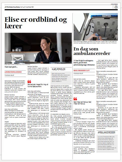 - Juster på rubrikstørrelser og billedstørrelser for at gøre artiklerne mere synlige. Husk på at billeder også fortæller en historie, så det er ikke kun selve teksterne, der har betydning. Oftest kigger læsere på billederne som det første, når de slår op i en avis.